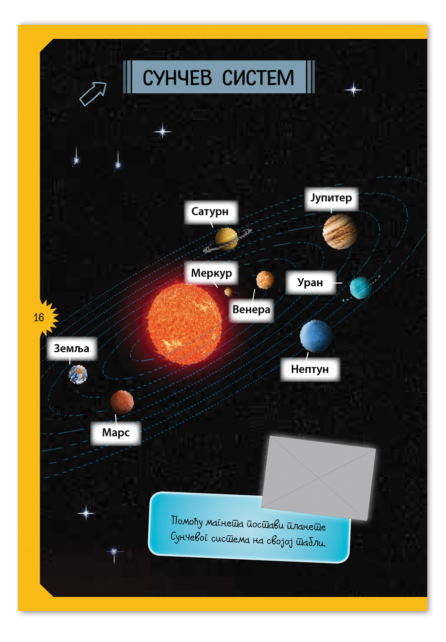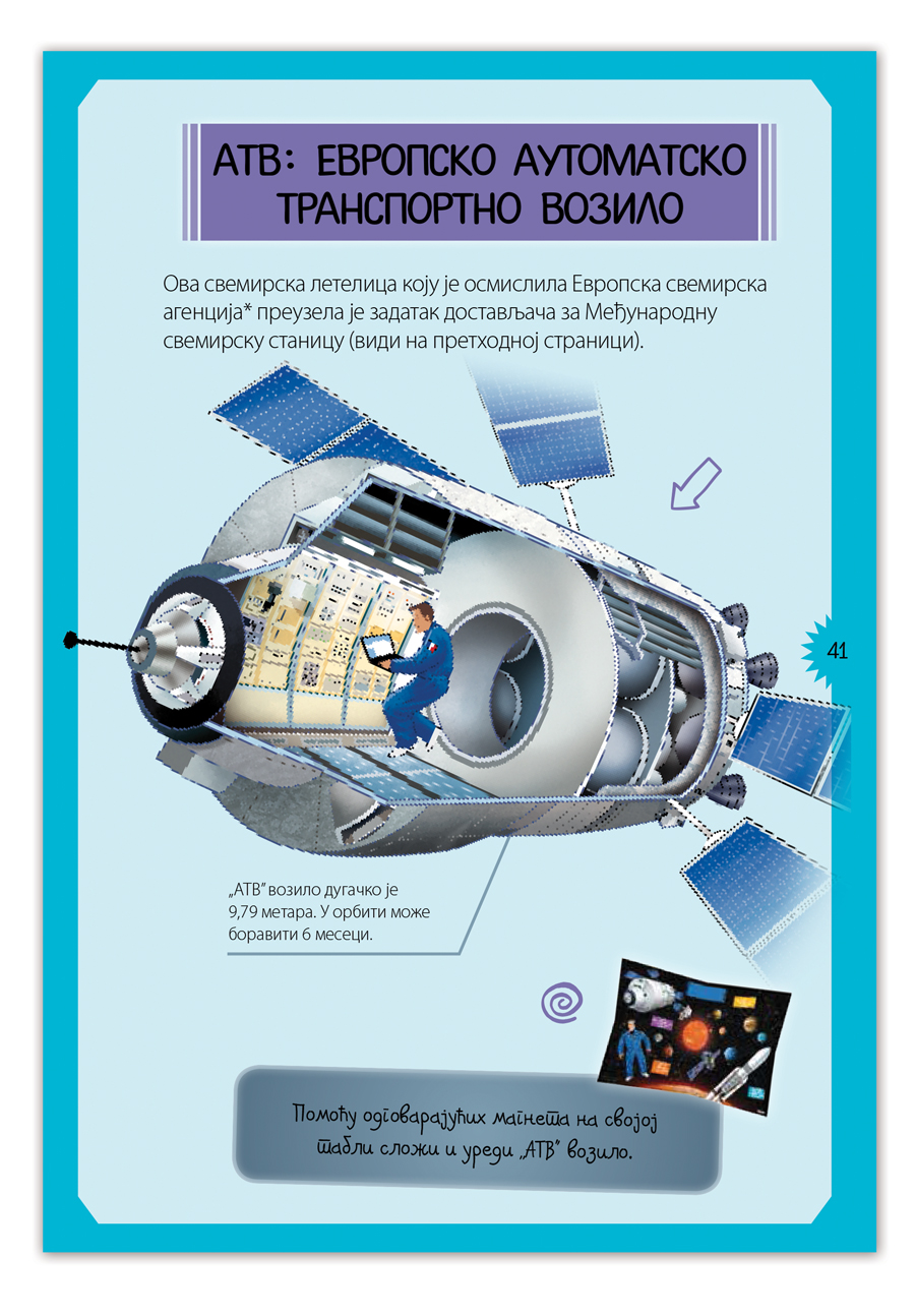 Uz pomoć ovog kompleta deca će na zanimljiv način saznati sve o svemiru. Kroz igru deca će sastaviti Sunčev sistem, unutrašnjost ATV letelice, raketu i svemirsko odelo!