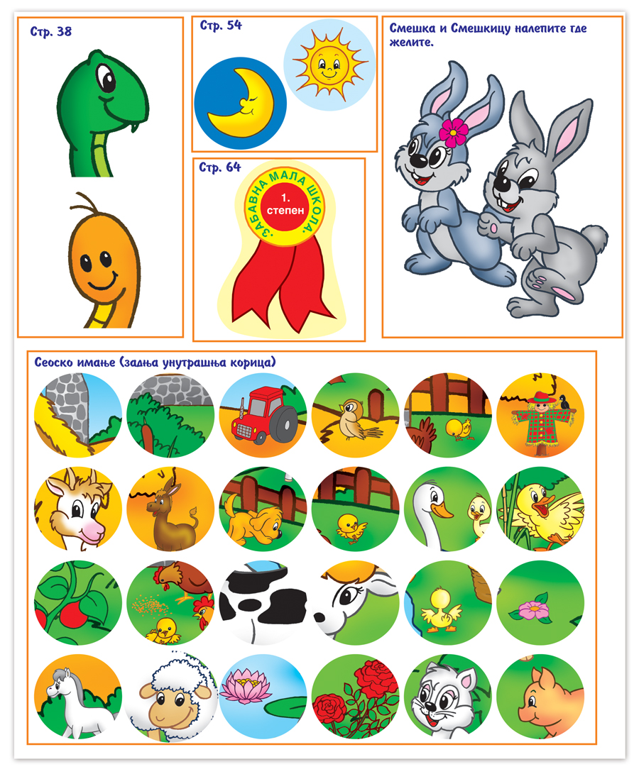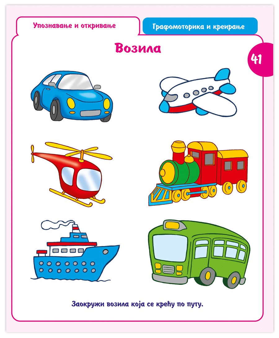 Radna sveska, zabavna MALA ŠKOLA namenjena najmlađem uzrastu dece uzrasta od 2-3 godine, na slikovit i odgovarajući način omogućava deci ovog uzrasta da vežbaju moć opažanja i razvijaju logičko razmišljanje i da stiču svoja prva saznanja iz prirode i društva, saznanja o životinjskom i biljnom svetu, živim i neživim bićima, godišnjim dobima, saobraćaju i prevoznim sredstvima, ljudima oko sebe, članovima porodice, jednom rečju o svemu onome što ih okružuje. Kroz raznovrsne zabavne i jednostavne zadatake u kojima je predviđeno da deca kroz igru crtaju, docrtavaju i boje oblike predmeta iscrtane tačkicama, da uče boje i oblike, rešavaju prve logičke zadatke, da razlikuju domaće od šumskih ili morskih životinja, mesta na kojima oni žive i čime se hrane, da slažu predmete u odgovarajuće oblike, učeći na taj način o odnosima u prirodi, oblicima, veličinama, brojevima i predmetima koji nas okružuju. Svaka knjiga sadrži kao dodatak malu diplomu i nalepnice.