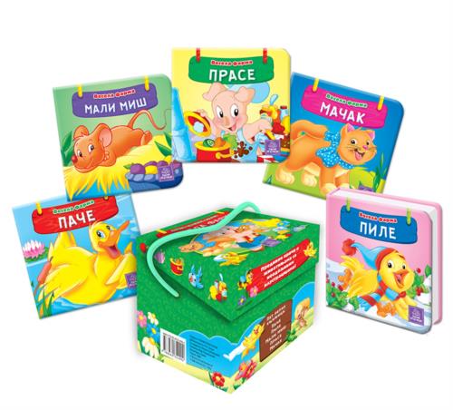 Predivne priče o životinjama sa neodoljivim ilustracijama. Pet lepih knjižica: Pače, Pile, Mali miš, Prase i Mačak.